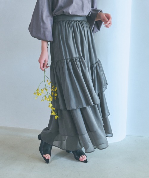 ーーー秋冬大人気だったスカートから春夏バージョン登場!ランダムに入ったティアードが特徴的なスカートーーー■point・ティアードのランダムデザインが存在感あるスカート・揺れるとキラキラするような、光沢感のある素材を使用 ・腰回りはスッキリ、切り替えから裾に向かってボリュームがあるためメリハリシルエットに ・落ち感のある生地を使うことでボリュームがありつつも上品な印象に ・ウエスト後ろはゴム仕様で履き心地◎■stylingショート丈のトップスと合わせてスタイルアップしたスタイリングがオススメ!足元はバレエシューズで綺麗めに、あえてオープントゥブーツなどカジュアルシューズを取り入れるのもお洒落です。※屋外の光や照明の当たり具合で、実際の商品の色味とカラー別画像の色味に若干の違いが発生する場合がございます。 詳細画像と併せてご確認の上、ご注文いただきますようお願い致します。【INFORMATION】■商品のお気に入り登録完売していても再入荷時に再入荷通知を受け取ることができますので、是非ご登録ください!■ブランドのお気に入り登録新商品や再入荷などの情報を受け取ることができますので、是非ご登録ください!