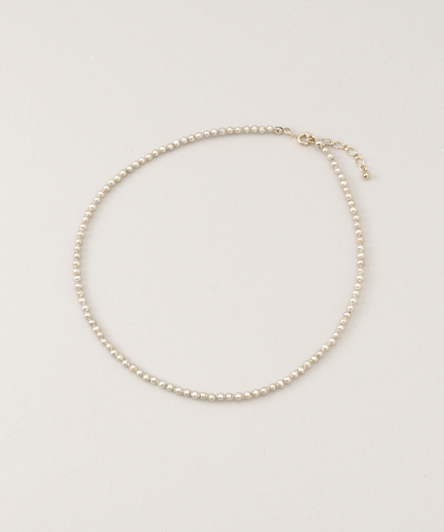 先方品番:アーカイブ08 種のような小粒のスフレパールを連ねたネックレス。 驚くような軽い着け心地がスフレパールの特徴です。 シャイニーゴールドのようなやや光沢感のあるカラーリングがいつものスタイリングを華やかに演出してくれます。 一粒一粒に若干の個体差があるため、シンプルなデザインの中にも表情のあるネックレスです。 ●シリーズのご案内 gren by M/グリンバイエム ケシ淡水パールチョーカー(商品番号:24091250003110) gren by M/グリンバイエム ポテト淡水パールチョーカー(商品番号:24091250003010) gren by M/グリンバイエム スフレパールネックレス(商品番号:24091250002810) gren by M/グリンバイエム クリアチェーンネックレス(商品番号:24091250002710) 【gren by M(グリンバイエム)】 デザイナーの山田みどりさんが手掛けているジュエリーブランド。 パリやミラノで仕入れたヴィンテージパーツやガラスストーンなど素材の価値にとらわれず日常を彩る華やかでユニークなデザインのファッションジュエリー。 世界中を旅して集めたというユニークなパーツを使い、大人の遊び心をくすぐるアイテムを展開しています。 ※取り扱いについては、商品についている品質表示でご確認ください。 ※こちらの商品は、NOBLEでの取り扱いになります。 直接店舗へお問い合わせの際はNOBLE店舗へお願い致します。 ※照明の関係により、実際よりも色味が違って見える場合があります。 またパソコン・スマートフォンなどの環境により、若干製品と画像のカラーが異なる場合もございます。 ※商品の色味は、商品アップ画像をご参照ください。