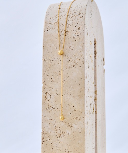 お好みでY字位置を変えられるスライダー仕様【素材】 真鍮地金にゴールドプレーティング加工を施しました。 【デザイン・シルエット】 「モンキーノット」と呼ばれるロープを編み込んだボールのようなモチーフをデザインに取り込んだシリーズ。 元々は船の入港時に、船側から陸にむかってロープを投げ渡す際の先端のおもりとして使われていたノットです。新しいロペの船出を表現するような、サントロペの港をイメージさせるモチーフ使いが特徴。 ノットモチーフにシリコンを埋め込んだスライダーをデザインに組み込んだラリエットタイプのネックレスです。モチーフに特徴があるので、カンなどを極力付けずにミニマルに仕上げました。先端にも同じモチーフをあしらっています。網目の細かなテクスチャを出すため、真鍮素材でモチーフのエッジにまでこだわった1品です。 【カラー】 ゴールド 【ロープノットモチーフ シリーズ】 スタッドピアス(品番:GGZ24020) イヤリング(品番:GGZ24030) ラリエット(品番:GGZ24040) バングル(品番:GGZ24050) と ノットモチーフ&パールを使用した パールイヤリング(品番:GGZ24130) パールネックレス(品番:GGZ24140) がございます。 【掲載情報】 BAILA WEB掲載 emmaさん着用 ※画像の商品はサンプルです。実際の商品と仕様、加工、サイズが異なる場合がございます。 ※撮影場所やライティング、お使いのモニター環境によって色の見え方が異なる場合がございます。 ※商品のカラーは画像の色味をご参照ください。動画は仕様説明のため、色味が実物と異なる場合がございます。