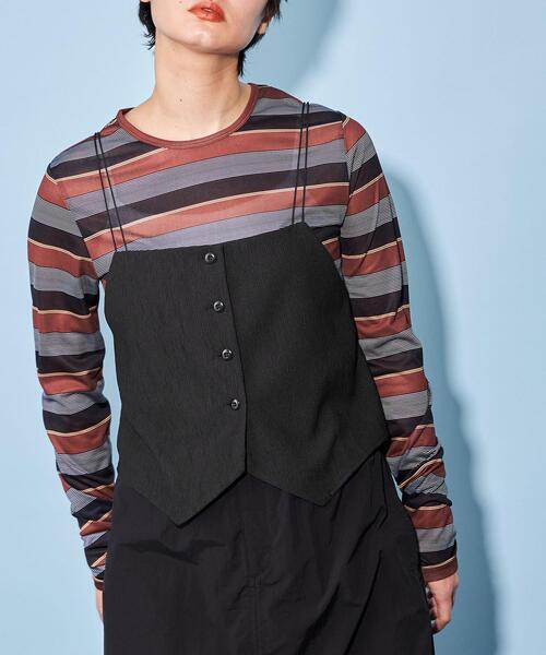 ベスト風のデザインがシャープな印象のキャミソール■デザインキャミソールでも甘くなり過ぎないベスト風のデザインがポイントです。ジャカードの表面感が雰囲気たっぷり。2本の華奢な肩紐のデザインもポイントです。■素材うねりのあるジャカード生地を使用しています。■コーディネートリブニットやシンプルなインナーの上に着用したり、カジュアルなTシャツの上にレイヤードしたり、合わせるアイテムによって長い間コーディネートが楽しめます。スラックスやデニムなど、ボトムも選ばずコーディネートしていただけます。#UNITED ARROWS,#ビスチェ,#ベスト,#重ね着,#しわ,#畝,#ジャガード,#細ストラップ============================裏地:なし透け感:なし伸縮:なし光沢感:なしケア方法:手洗い可、ドライクリーニング============================<CITEN(シテン)>ユナイテッドアローズから2021秋冬シーズンにデビューした新ブランドCITEN(シテン)。~FUTURE ESSENTIALS.~これからの良い服って、なんだろう。 Long Lifeで、快適で、いろんなライフスタイルにもフィットする服ではないでしょうか。そんな服をカタチにするために必要なエッセンスで構成されるブランド「CITEN」。素材や機能を丁寧に選ぶ、Well - Choice。着る人が大切に使えるような工夫を凝らす、Well-Design。価格を超えた価値を提案する、Well-Price。Wellの積み重ねから、Well-Madeな服へ、そして着る人の暮らしに欠かせない服へ。「CITEN」は新たな時代の、新たな視点・支点・始点です。【注意事項】※画像の商品はサンプルです。実際の商品と色味、仕様、加工、サイズ、素材等が若干異なる場合がございます。※工場の生産の都合上、納期が変更になる場合がございます。発送日の前後についてはあらかじめご了承ください。※入荷状況により、お客様への発送が店頭販売より遅れる場合もございます。※商品を使用前に、タグ等に記載されている「取り扱い上の注意書き」、「洗濯表示」を必ずご確認ください。※商品画像は、光の当たり具合やパソコンなどの閲覧環境により、実際の色味と異なって見える場合がございます。あらかじめご了承ください。※商品の色味の目安は、商品単体の画像をご参照ください。店舗へお問い合わせの際は、全国のCITEN各店舗まで下記の品名/品番をお申し付けください。品名:ボタンフロントショートキャミ 品番:42116990042