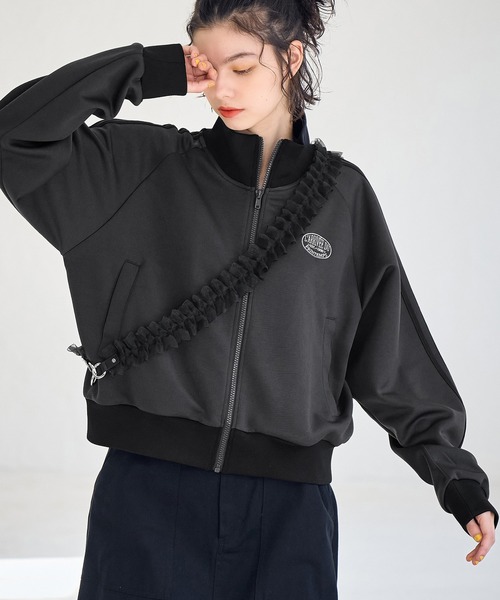 注目のトラックジャケットをフェミニンにデザイン。【素材感】 ・軽めのジャージ素材を使用。 【デザイン・シルエット】 ・メンズライクなカジュアルルックが手軽に楽しめるトラックジャケット。 ・コンパクトなシルエットと着丈で女性らしくアレンジ。 ・すっきりとした配色デザインや、胸もとの刺繍がアクセント。 【カラー】 ・チャコールグレー、アイボリーの合わせやすい2色をラインナップ。 <ロゴの意味> L'ARRIVE'E DU PRINTEMPS : 春の訪れ 【スタイリングポイント】 ・デニムのロングスカートでヴィンテージライクなスタイルが完成。 ・女性らしいスタイリングにプラスするのがおすすめ。 ----------------------------- 裏地:なし 透け感:なし 伸縮性:ややあり 生地感・厚さ:普通 ポケット:あり 季節:春・秋 ----------------------------- ※撮影時の光、お使いのモニター環境によって色の見え方が違う場合がございます。 ※モデル身長:166cm 着用サイズ:38