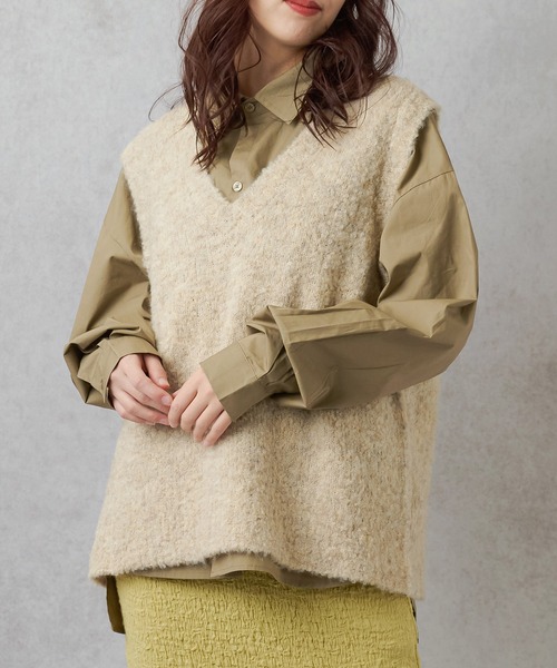 【コーデにプラスするだけでオシャレ見え★ニットベスト】 ▼おすすめポイント 1.程よいオーバーシルエットで、心地よく着られるニットベスト そのまま着用していただくのはもちろん、タックインもしやすい着丈に拘りました。 2.薄すぎず厚すぎないブークレニットで、ふんわり軽い着心地。 これからの季節はもちろん、春先にも使えてロングシーズン活躍します◎ 3.首周りはすっきり見えるVネックで、暖かくなってきたらキャミソールなどとレイヤードしていただき ノースリーブでの着用もオススメです★ ▼担当からひと言 1.定番カラーと春らしいライムカラーを差し色にしました! 2.ミックス糸を使用しているので、1枚でも存在感のあるニットです◎ ----------------------------------- 透け感:なし 厚さ:普通 伸縮性:あり 洗濯方法:手洗い可能 ----------------------------------- ※詳しいお手入れ方法は、商品タグをご確認ください。 ▼お悩みの方に ------------------------------ 〇アイテムのお気に入り登録 気になっているアイテムの色、サイズの♡をクリックして、ラスト1点を通知でお知らせします 欲しかったアイテムの♡をクリックすると再入荷の通知でお知らせします。 ------------------------------ 〇ショップのお気に入り登録 ショップページの♡をクリックすると、新商品、人気アイテムの再入荷など、お得な情報を受け取ることができます。 ------------------------------ ▼注意点 ※掲載画像(商品、モデル着用とも)につきまして、撮影環境やお客様の閲覧されますパソコンや携帯電話キャリアによって、実際の商品とは多少異なった色に見える場合があります。 また表示のサイズ感も実物とは若干異なる場合もございますので、予めご了承ください。 ※タグ・バーコードのついたシールには、サイトのご案内と異なるカラー名が記載されていることもございます。ご了承ください。