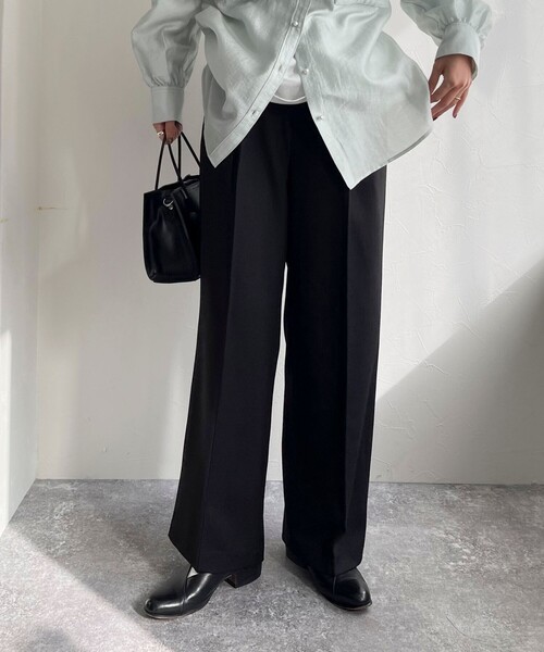 ◇fredy emue◇【2024 SS】着こなしを今っぽく格上げするタックデザインスラックスパンツ●point・ワイドすぎない絶妙なシルエットに仕上げたタックスラックスです・ソフトな生地感で履き心地も抜群な1枚!・大きめに入ったタックが綺麗なシルエットを演出します・ウエストは後ろがゴムになっているので、きちんと見えするのにラフな履き心地・しわが目立ちにくい素材なのでお手入れも安心です・カジュアルなカットソー合わせからジャケット合わせなどのキレイ目スタイルまで、幅広いコーディネートに合います・ロングシーズン着回せ、幅広いシーンで活躍する万能アイテムです・これからの春シーズンにかけて行われる卒業式や入学式のセレモニー時にもオススメです透け感:なし裏地:なし伸縮性:なし光沢感:なし洗濯:手洗い可●お取扱い上のご注意●*商品を長くご愛用していただきたいため、アテンションタグがある場合は必ずご確認の上、着用又はお取り扱い下さい。*画像の商品はサンプルとなりますので実際の商品と仕様(主にファスナー・釦等の付属品)、加工、サイズが若干異なる場合がございます。*店頭及び屋外での撮影画像は、光の当たり具合で色味が違って見える場合があります。商品の色味は、スタジオ撮影の画像をご参照下さい。*商品画像に関しては出来る限り忠実に表示出来るよう努めておりますが、お客様がご利用のモニターの設定及び特性により、実際の商品と比較し色味に若干の誤差が生じる場合があります。*製品洗い加工の商品は、多少の歪み、シワなどが見られたり、風合いやサイズ等が1枚1枚異なります。汗や雨等で濡れた時や、摩擦により色落ちし、他の衣料を汚すことがありますので(特に濃色のもの)ご注意ください。◇商品のお気に入り登録◇【お気に入りに登録 ♡マークをクリック】を是非ご活用ください! 再入荷の通知や、ラスト1点の通知、セールの通知がいち早く届きます。◇ブランドのお気に入り登録◇新商品や再入荷など、いち早くブランドのお得情報が届きます。