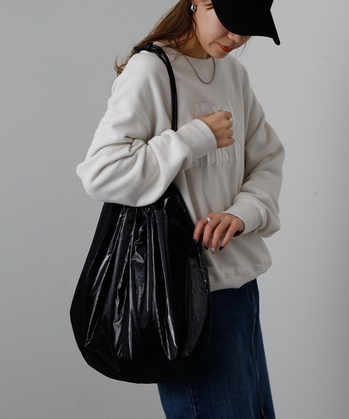 【シャイニーな光沢感とモードライクなシルエットが目を惹くトートバッグ】 シャイニーな光沢感がある素材を使用した個性派バッグが登場。 バルーンのような親しみのあるシルエットながら、インパクト抜群の光沢感はコーディネートのスパイスアイテムにピッタリです。 こなれ感のあるキャッチーなアイテムなので、ワンランク上のモードでアーバンな雰囲気に仕上げます。 500mlペットボトルや長財布もすっぽり収まる大容量サイズで、様々なものを入れられて機能性もバッチリです。 機能性とデザインが両立しているのではデイリーユースにもおすすめのオトナのトートバッグです。 【商品ポイント】 ・内側:オープンポケット×1 ・500mlペットボトルや長財布もすっぽり収まる大容量 ・デイリーユースにもおすすめ◎ ---------------------------------------------------- ■素材 表地: ナイロン100% 裏地: ポリエステル100% 付属部分: 合成皮革 ---------------------------------------------------- ※着用、お取り扱いの際は、商品についている品質表示とアテンションタグを必ずご確認下さい。 ※商品タグに記載されている商品名がWEBでの表記名と異なる場合があります。 ※画像の商品はサンプルです。実際の商品と仕様、加工、サイズが若干異なる場合がございます。 ※照明の関係により、実際よりもやや明るく見える場合がございます。またパソコンなどの環境により、若干製品と画像のカラーが異なる場合もございます。予めご了承くださいませ。 【お気に入り登録】してお得な情報をCHECK!! ・「商品のお気に入り登録」で再入荷通知や、ラストの通知、セール通知も受け取ることができます。 ・「ブランドのお気に入り登録」で新商品や再入荷など、お得な情報を受け取ることができます。