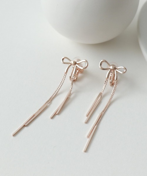 ■リボンモチーフが耳元で揺れる可愛らしいデザインのイヤリング■ 華奢なラインでできたリボンモチーフのロングイヤリング。 さり気なく揺れて着けるだけで女性らしい印象に♡ 程よい長さが使いやすく、 コーディネートのワンポイントに♪ ▼商品画像について▼ ※撮影場所やお使いのモニター環境により実際の商品と若干お色味が異なる場合があります。 ======================= 《お気に入り登録》でお得な情報がたくさん! ▼商品のお気に入り登録▼ ♡をクリックしてお気に入り登録をすると 再入荷通知やラスト1点の通知をお知らせします。 ▼ブランドのお気に入り登録▼ お気に入りショップに追加していただくと、 いち早く ThreeFourTime のお得な情報・新入荷情報を 受け取ることができます。 =======================
