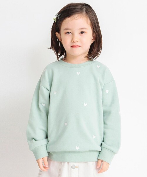 branshes一押しのハートの総柄がとってもキュートなトレーナーです。 形はベーシックなトレーナーなので、デニムでも、スカートでも いろんなコーディネートが楽しめます。 オフホワイトとライトグリーンの展開です。 ----- 透け感:ややあり 伸縮性:なし ※モデル着用写真についてはイメージの為、実際の 商品とカラーや仕様が異なる場合がございますので、 商品画像をご覧ください。 ※商品の色味につきまして、お客様のお使いのPCの モニター環境により実際のカラーと画像の色味が 違って見える場合が御座います。 予めご了承の上、ご注文下さい。 ※店頭・外での撮影画像は光の加減で、 実際の商品より明るく見える場合が御座います。 子ども/子供/こども/子供服/キッズ/ジュニア/男の子/女の子