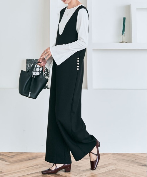 ポケットパール付きサロペット ■デザイン ・ポケットの大粒パールが贅沢な大人サロペット。 ・程よいワイド感のストレートシルエットでリラクシーに綺麗見えが叶います。 ・前後2way仕様で、Uネックと深Vネックを気分に合わせて楽しめます。 ■素材 しなやかさと程よいハリ感を持ち合わせた上質なポリエステルツイル生地。 1枚でも安心感のあるしっかりとした素材が見た目にも”きちんと感”を与えます。 ■スタイリング シンプルトップスに合わせるだけで、いつもより一層魅力的な着こなしに。 トップスや小物使いを変えるだけでシーズンレスに着回しできるところも魅力◎ ------------------ 透け感:なし 厚さ:普通地 伸縮性:少しあり 裏地:なし ポケット:あり ------------------ 【商品のお気に入り登録】 再入荷通知や、残り1点の通知、お得な情報を受け取ることができます。 【ブランドのお気に入り登録】 新商品や再入荷の情報をいち早く受け取ることができます。 ※MADE IN CHINA(中国製) 【注意事項】 ※平置き・メジャー採寸ですので若干の誤差が生じる場合がございます。 ※撮影時のライティング、ご覧になっているモニター・pc環境により実際の商品と色味が異なって見える場合がございます。 ※機械による生産過程において商品によっては染料の性質上、多少の生地を織る際の糸の継ぎ目・繊維が混紡・ほつれ・接着剤付着・臭い等が生じる場合が御座います。 ※生地や素材の特性上、匂いが感じられるものもございますが陰干しなどで匂いはほとんど感じられなくなります。 ※商品をお安く提供させて頂く為、検品後のアイロン掛けは省略させて頂いております簡易梱包の為、たたみシワがあると思いますが、ご了承ください。 ※ご注文いただいた予約商品のお届け時期の確認は、注文履歴ページより行えます。 ※他のキャンペーンにより、期間中に価格が変動する場合があります。 ※セールは予告なく終了させていただく場合もあります。