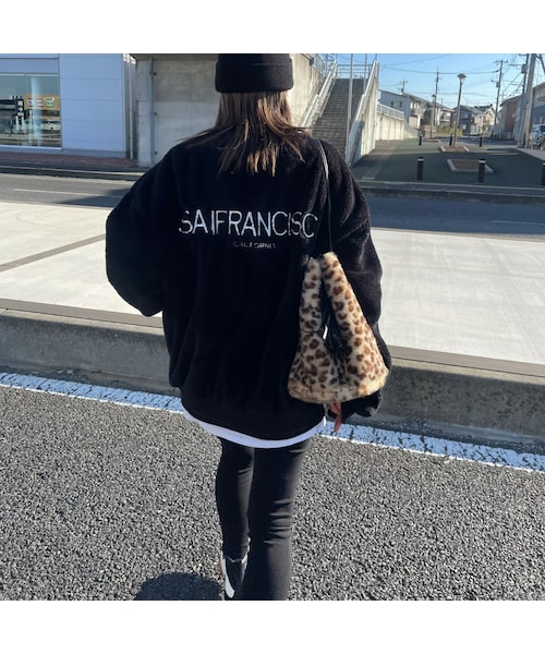 ふわふわもこもこで着心地の良いボアフリースでできたビッグシルエットトレーナー。 前後ロゴが目を惹く1枚。 ワイドな身幅に、肩を落としたようなドロップショルダーがポイント♪ 袖丈も長めに設定だからルーズな手首まで隠れるルーズな着こなしが可能でユニセックスで着られるアイテム! ボリュームあるトップスなのでスキニーパンツで合わせたり、ワイドパンツとのコーデでよりルーズな ゆるコーデもおススメ! 寒い時期にぴったりのデイリーアイテムです。 ※モデル身長:161㎝ ◾️カラー ブラック ◾️サイズ 肩幅:64㎝ 胸囲:70㎝ 袖丈:60㎝ 着丈:72㎝ ※多少の誤差は予めご了承ください。 ◾️素材 ポリエステル100% ※こちらの商品は海外縫製の為、多少歪み・縫製の甘さ(糸の出)などがある場合がございます。予めご了承下さい。