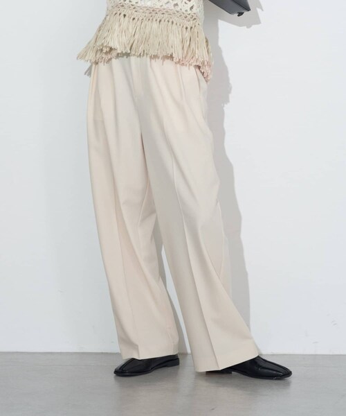 Lui's FEMME(ルイス ファム)オリジナル24SSコレクションマーベルトデザインワイドパンツ【素材】さらりと落ち感がありながらほどよい肉感の生地を使用。【デザイン】オールシーズン着まわしの効くスラックス。あえて外側に施したマーベルトがデザインポイントのパンツ。ブラック×ホワイト、○○×ホワイトの配色がシンプルな中にアクセントをプラスし、一気に洗練された印象に。ワイドなシルエットながら脚のラインがきれいに出るようにツータックとセンタープレスで仕上げ、すっきりとした仕上げました。ワードローブに加えるだけで、着こなしの幅が広がる1着です。【スタイリング】ジャストウエストでマニッシュに穿いていただくのがおすすめ。メンズのスラックスのようなマーベルト仕様で綺麗めなオンスタイルにも、カットソーやスニーカーと合わせたラフなスタイリングにもおすすめなアイテムです。あわせるトップスに困らないアイテムです!**********************透け感:なし伸縮性:なし光沢感:なし生地の厚さ:普通**********************【ブランド】Lui's FEMME(ルイス ファム)凛とした芯のある女性。 自立した、女性のワードローブをイメージ。洗練されたかっこよさの中に、女性らしさ・かわいさ・セクシーさを持つ。自分自身のスタイル(自分らしさ・個性・生き方・感覚...)を表現できるひとつの手段としての服。肩肘張らない、心地よいリラックス感のあるスタイルを上質な素材、優雅なシルエットで提案。【注意事項】※画像の商品はサンプルです。実際の商品と色味、仕様、加工、サイズ、素材等が若干異なる場合がございます。※工場の生産の都合上、納期が変更になる場合がございます。発送日の前後については予めご了承ください。※入荷状況により、お客様への発送が店頭販売より遅れる場合もございます。※商品を使用前に、タグ等に記載されている「取り扱い上の注意書き」、「洗濯表示」を必ずご確認ください。※商品画像は、光の当たり具合やパソコンなどの閲覧環境により、実際の色味と異なって見える場合がございます。予めご了承ください。▼商品のお気に入り登録完売カラーの再入荷通知やセール情報を受け取ることができます。▼PALCLOSETアプリにてブランドフォロー新商品や再入荷等、いち早くブランドのお得な情報を受け取ることができます。