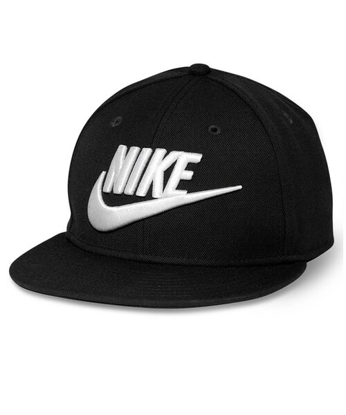 The Futura Nike True Snapback Hat: a must-have for any cap collection. Body/face of front panel: Wool; back of front panel: polyester/cotton; upper bill: polyester; underbill: cotton Dry clean Imported Nike men's hat Logo at front Snapback closure at back One size fits all