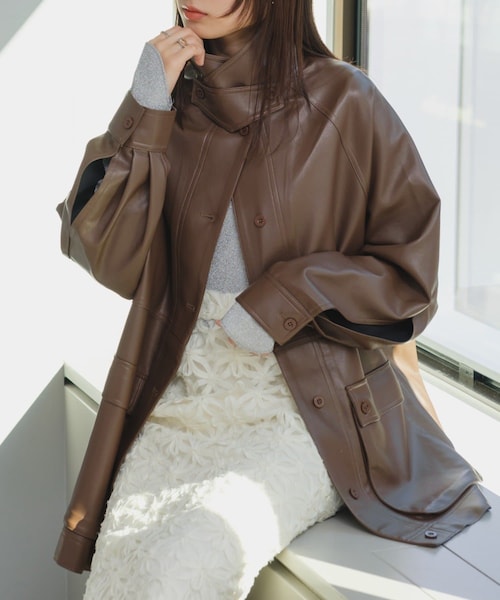 長く重宝すること間違いなしのレザージャケットPRE ORDER 1.19 FRI 12:00 STARTお気に入り♡マークを押して販売開始までお待ちください。■デザインオーバーサイズのフェイクレザージャケットが登場。ゆったりとしたサイズ感なので、中に着るトップスも気にせずに着ていただけます。シンプルなデザインに両サイドの大きめなポケットがポイントに。首元はスタンドにもなり2WAYで着こなしを楽しめます。軽くて柔らかく、着心地の良さも◎■コーディネート腰回りまですっぽり隠れるサイズ感なので、特に高身長の方に嬉しい丈感。小柄な方はミニ丈でも楽しめる長さです。オーバーサイズなので、トレンドのIラインスカートと相性◎袖のボタンを外して、インナーをチラ見せしていただくのもおすすめです。■初回店頭入荷時期2月上旬頃予定※ブラウンのみ2月中旬頃※入荷日ごとに数量が決まっている為、オンラインでは完売後に次期納期の数量にて予約販売を行っております。店頭入荷時期と予約商品のお届け時期が異なる場合がございますので、予めご了承下さい。※詳しい入荷時期に関してはお近くの店舗へお問い合わせ下さい。※こちらに記載している入荷時期は初回入荷時期となり、追加入荷のある商品もありますため詳しくお近くの店舗へお問い合わせ下さい。※サイズ採寸は各モールによって異なり、多少の誤差が生じる可能性がありますのでご了承ください。※商品画像はサンプル品を使用しているため、実際の商品と仕様、加工、サイズが若干異なる場合がございます。また、可能な限り実物に近いカラーにて掲載していますが、使用しているパソコンのモニター設定や、携帯電話のメーカー・機種により実際のカラーと異なって見える場合がございます。予めご了承ください。▼商品のお気に入り登録完売カラーの再入荷通知を受け取ることができます。▼PALCLOSETアプリにてブランドフォロー新商品や再入荷等、いち早くブランドのお得な情報を受け取ることができます。<返品・キャンセルについて>・着用・洗濯後の返品は致しかねます。・商品到着後、着用前に商品を確認して頂きますようお願い致します。kastane240119