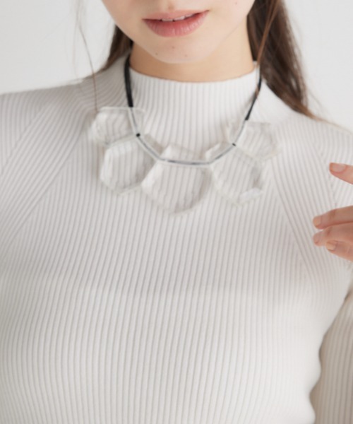 【顔まわりをモードな雰囲気に仕上げてクレスビッグネックレス】 【Design】 顔回りを洗練された印象に仕上げてくれるクリアビッグネックレス。 各パーツの角度などに拘りリッチ感のあるデザインで仕上げました。 紐をあえて合皮にすることで、モード感がプラスされ、より華やかな印象にしてくれます。 【Color】 定番でスタイリングしやすいクリアをご用意致しました。 ▼商品のお気入り登録 お気に入りアイテムの値下げ・再入荷・在庫1点などの通知を受け取ることができます。 ▼ブランドのお気に入り 登録新商品や再入荷、セール、クーポン配布などお得な情報を受け取ることができます。 こちらの商品はrienda独自の採寸方法となっています。本サイトのサイズガイドと採寸方法が異なる場合がありますのでご了承ください。