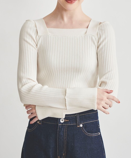 ◆◇◆2024 Spring/SummerCollection◇◆◇ 長い肩ひもを後ろで垂らすベルトデザインのワイドリブニット。 肩は落としてオフショルダーとしても、肩に乗せて露出のないセットインとしても着用頂けます。 フレア気味な袖口は大きく折り返しになっておりリラックスな印象。 カジュアルにもキレイめにも、シンプルで合わせやすいニットトップスです。 ・‥…━…‥・‥…━…‥・‥…━…‥・‥…━…‥・‥… ▼サイズ 36/総丈53.0cm、身巾32.5cm、裾巾31.0cm、袖丈60.5cm、袖巾12.0cm、袖口巾10.5cm ▼ファブリック ----------------------------- 透け感: なし 伸縮性: あり 裏地:なし 光沢:なし 生地の厚さ:普通 洗濯:ドライクリーニング ----------------------------- ▼スタイリング 肩のベルトがキャッチーなレイヤード風ニット。 衿ぐりはその日の気分でオフショル風にしても肩に乗せるようにして着ても良いのでコーディネートを楽しめます。 丈感が短めなのでデニムと合わせてカジュアルにしてもミディアムorロング丈スカートと合わせてきれいめに合わせても◎。 ※サイズ表記につきましては、商品によって同サイズや同色等であっても各商品毎に誤差が生じる可能性がある為、サイズ表記はあくまでも目安としてご参照ください。 ※モデル着用アイテムはサンプル商品の為、実際よりサイズや色が異なる場合がございます。サイズはサイズ詳細等にてご確認下さい。 ※モデル着用カラーは、撮影環境の兼合いにて、実際のカラーと異なって見える場合がございます。商品カラーに関しましては、物画像をご参考ください。 ※取り扱いについては、商品についている品質表示でご確認ください。 ※商品画像はサンプルのため、色味や仕様変更がある場合がございますので予めご了承ください。 ※画像と柄の位置が異なる場合がございます、ご了承下さい。 ※撮影の照明状況やパソコンなどの環境により、若干製品と画像のカラーが異なる場合もございます。予めご了承ください。