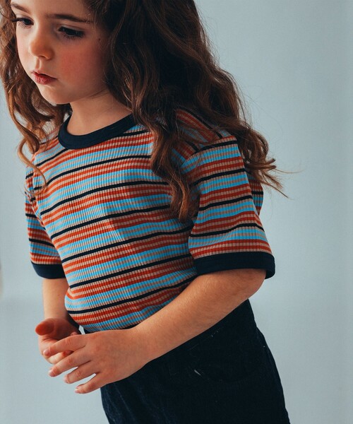 定番こそこだわりたい!個性派リンガーTスポーティになりがちなリンガーTも、リブで仕立てれば新鮮に。カラーのコントラストにこだわり、印象の異なる、爽やかなミントと、クラシックなマルチボーダーをご用意。男の子も女の子も取り入れやすく、洗練された雰囲気に仕上がりました。伸縮性に富んだやわらかな素材感で着心地も抜群です。そのままさらっと着るのはもちろん、シャツや、オールインワンと合わせたマリンスタイルもおすすめ。兄弟姉妹でのリンクコーデにもぜひ♪【対象年齢:およそ4~10歳】Girl Model: H109(cm) Size:110※光の当たり具合やパソコンなどの閲覧環境によって実際の色味と異なって見える場合がございます。予めご了承ください。※商品の色味は商品単体で撮影した画像をご参照ください。WEB?MilK MAGAZINE JAPONこども ビームス / コドモ ビームスこどもたちの豊かな感性や想像力を、よりいっそう伸ばすきっかけになるモノやコトを提案する〈こども ビームス〉。日々成長するこどもとのかけがえのない時間が心豊かで、もっと素晴らしいものになるようなモノやコトを提案しています。