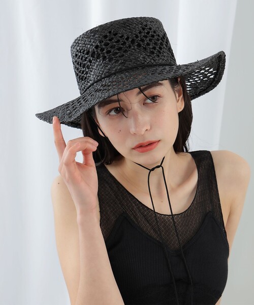 夏の日差しを華やかに ■デザイン 透編みデザインが目を惹くラフィアハット。程よく大きなツバが女性らしさを演出してくれます。ゴールドの留め具が上品なドローコードもポイント。被るだけでシーズンムードを盛り上げてくれるひと品です。 ■コーディネート ワンピースと合わせてフェミニンに、あえてTシャツにデニムなどカジュアルに合わせるのもおすすめ。 ■サイズ しっかりと存在感のあるボリュームです。 ■素材 天然草木 ※光の当たり具合やパソコンなどの閲覧環境によって、実際の色味と異なって見える場合がございます。予めご了承ください。 ※商品の色味は商品単体で撮影した画像をご参照ください。