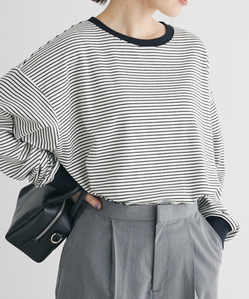 ふんわりとしたマシュマロタッチが心地よいプルオーバー。 コーディネートのアクセントに映える爽やかなマルチボーダー柄もポイント。 ドロップショルダーのゆったりシルエットで、華奢見せ効果も期待できます。 デイリーユースしやすく、カジュアルにも綺麗めにもスタイリングが楽しめる1着です。 透け感[無し] 裏地[無し] 伸縮性[やや有り] 光沢感[無し] 生地の厚さ[普通] 付属品[無し] ポケット[無し] ●製品寸法: F:バスト62cm 着丈70cm 袖丈52cm 肩幅59cm 裾幅61cm 備考: