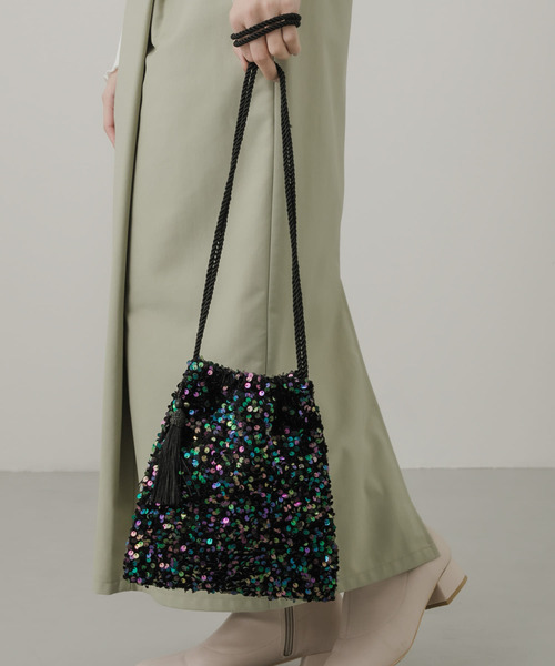 【パッと目を引くスパンコールの煌めき】 ●アイコニックなキラキラルックス ●斜め掛けでも手持ちでも使えるデザイン ●卒業式や結婚式のお呼ばれなどのシーンでも活躍 キラキラなルックスが目を引くスパンコールを全体に施したキンチャク型のショルダーバッグ。 フリンジをプラスした上品さのあるアイテムで、デイリーコーデだけでなくオケージョン・フォーマルなどきちんと感のあるスタイリングにもマッチしますよ♪ 【2024 Spring/Summer】【24SS】 総重量 : 約105g ※商品画像は、光の当たり具合やパソコンなどの閲覧環境により、実際の色味と異なって見える場合がございます。予めご了承ください。 ※商品の色味の目安は、商品単体の画像をご参照ください。 ▼お気に入り登録のおすすめ▼ お気に入り登録商品は、マイページにて現在の価格情報や在庫状況の確認が可能です。 お買い物リストの管理に是非ご利用下さい。