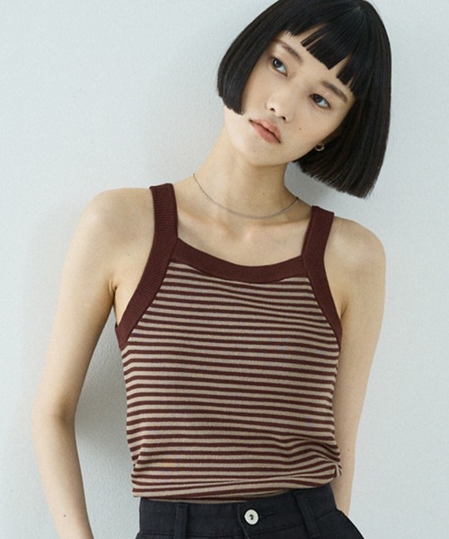 -Design-ニットアイテムとしては珍しい胸パッド入りのニットタンクトップ。さらっとした麻タッチの糸で着心地も伸縮性も抜群。インナーとしてはもちろん、1枚でも着れる大活躍なアイテムです。-Detail-細ピッチのボーダー、無地、無地配色の3パターンをご用意。何枚持っていても間違いなしの、この春夏の必需品に。-Cordinate-インナーとしてはもちろんのこと、一枚でデニムやスカートとさらりと合せてヘルシーに着るのがオススメ。【注意事項】※商品画像は、光の当たり具合やパソコンなどの閲覧環境により、実際の色味と異なって見える場合がございます。あらかじめご了承ください。※画像の商品はサンプルです。※商品の色味の目安は、商品単体の画像をご参照ください。※商品を使用前に、タグ等に記載されている「取り扱い上の注意書き」「洗濯表示」を必ずご確認ください。※商品に不良が無い場合、包装紙および箱の彼損がございましても発送いたします。あらかじめご了承ください。