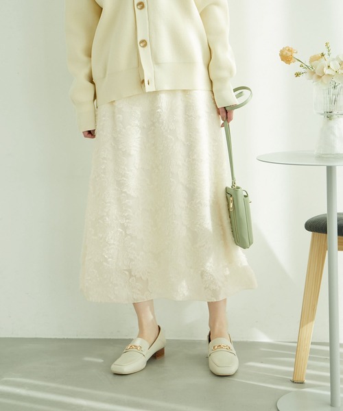 取り入れ方は自由に楽しめるフリンジロングスカート。【デザイン・シルエット】・広がりすぎない、上品なAラインシルエットのロングスカート。・レイヤード対応のフリンジデザイン。・ウエストは後ろ側がギャザー使いでフィット。【カラー】・ブラック、ホワイト、サックスブルーの3色展開。【スタイリングポイント】・フレアジーンズやワイドパンツに重ねるのが一押し。・ロング丈のシャツやニット、ジレとのレイヤードも楽しめる。-----------------------------裏地:あり透け感:なし伸縮性:なし生地感・厚さ:普通ポケット:なしウエスト:後ろゴムその他仕様:左ファスナー季節:春・夏-----------------------------※撮影時の光、お使いのモニター環境によって色の見え方が違う場合がございます。※スタッフスタイリングの画像、動画は野外の光や照明の当たり具合で、実際の商品の色味と異なる場合がございます。実際の商品に近い色味は商品ページをご確認ください。※モデル身長:165cm 着用サイズ:38