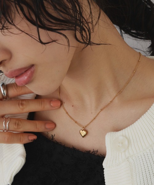 【ドットチェーンハートネックレス/ステンレススチール】 程よく存在感のあるハートと 女性らしいドットチェーンが 鎖骨をよりきれいに魅せ、バランスの取れたデザインに。 ステンレス素材でさびにくく日常遣いにおすすめです。 着用時の窮屈感はなく、ややゆとりのあるサイズ感、 軽量でストレスフリーにお召しいただけます。 甘くなりすぎないハートモチーフはシンプルで合わせやすく、 カジュアルなスタイリングも1点加えるだけで旬顔にアップデート。 合わせやすいシルバーとゴールドの2色展開です。 贈り物にはもちろん、 ご自身のご褒美プレゼントにもおすすめのアイテムです。 【商品のお気に入り登録】 完売カラーの再入荷通知やラスト1点の通知 プライスダウンの通知も受け取ることができます。 ぜひご登録ください◎ 【ブランドのお気に入り登録】 新商品や再入荷など、 ブランドの情報をいち早くお知らせします! ぜひご登録ください◎ ※ご注意※ ・屋外の光や照明の当たり具合で、実際の商品の色味と カラー別画像の色味に若干の違いが発生する場合がございます。 ・詳細画像と併せてご確認の上、ご注文いただきますようお願い致します。