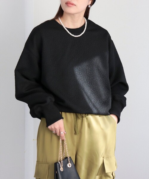 ◇fredy emue◇【2024 SS】レオパード柄のジャガード地がこなれ感を演出してくれるプルオーバー●point・レオパード柄のジャガード生地を使用したカットソープルオーバーです・やや膨らみのある凹凸のレオパード柄の生地がシンプルなデザインながらも今っぽさを演出してくれます・シンプルなスウェット型のシルエットでどんなアイテムとも合う万能に使えるアイテムです・ドロップショルダーでややゆったりしたサイズ感なので肩回りを華奢に見せてくれます・サラッとした肌触りで着心地の良い1枚です・ほどよい丈感でボトムを選ばないのも嬉しいポイント◎・タートルネックなどのインナーを合わせれば寒い時期から使用していただけます・デニム合わせはもちろんスカートとも相性◎キレイ目からカジュアルまで幅広い着こなしができるアイテムです透け感:なし裏地:なし伸縮性:若干あり光沢感:なし洗濯:手洗い可●お取扱い上のご注意●*商品を長くご愛用していただきたいため、アテンションタグがある場合は必ずご確認の上、着用又はお取り扱い下さい。*画像の商品はサンプルとなりますので実際の商品と仕様(主にファスナー・釦等の付属品)、加工、サイズが若干異なる場合がございます。*店頭及び屋外での撮影画像は、光の当たり具合で色味が違って見える場合があります。商品の色味は、スタジオ撮影の画像をご参照下さい。*商品画像に関しては出来る限り忠実に表示出来るよう努めておりますが、お客様がご利用のモニターの設定及び特性により、実際の商品と比較し色味に若干の誤差が生じる場合があります。*製品洗い加工の商品は、多少の歪み、シワなどが見られたり、風合いやサイズ等が1枚1枚異なります。汗や雨等で濡れた時や、摩擦により色落ちし、他の衣料を汚すことがありますので(特に濃色のもの)ご注意ください。◇商品のお気に入り登録◇【お気に入りに登録 ♡マークをクリック】を是非ご活用ください! 再入荷の通知や、ラスト1点の通知、セールの通知がいち早く届きます。◇ブランドのお気に入り登録◇新商品や再入荷など、いち早くブランドのお得情報が届きます。