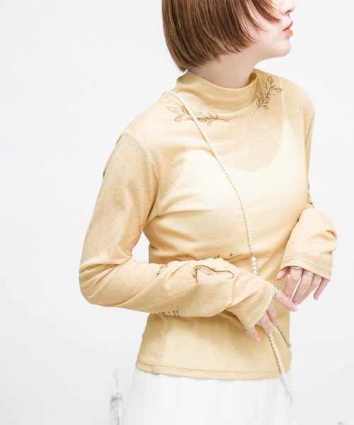 【今期も見逃せない!人気の主役級カットソーがリニューアルして登場】 毎シーズン人気のグラフィックプリントカットソー。24SSはハイネックにリニューアル!透け感のある梨地織りの生地に大胆なグラフィックプリントを施した1着。存在感があり、シンプルなボトムを合わせるだけでサマになります。カラーごとにガラッと雰囲気が異なるので色違いでお持ちいただくのもおすすめ。 COORDINATE 柄が引き立つようシンプルなアイテムと組み合わせるのが◎身頃や袖回りがすっきりとしているのでサスペンダーパンツやキャミワンピースとも好相性。ジャケットやカーディガンのインナーにもおすすめです。 【2024 Spring/Summer】【24SS】 ※この商品は、直射日光や蛍光灯に長時間あたると変色したり、色褪せすることがありますのでご注意ください。 ※商品画像は、光の当たり具合やパソコンなどの閲覧環境により、実際の色味と異なって見える場合がございます。予めご了承ください。 ※商品の色味の目安は、商品単体の画像をご参照ください。 ▼お気に入り登録のおすすめ▼ お気に入り登録商品は、マイページにて現在の価格情報や在庫状況の確認が可能です。 お買い物リストの管理に是非ご利用下さい。 素材感 透け感 : あり 伸縮性 : あり 裏地 : なし 光沢 : なし ポケット : なし