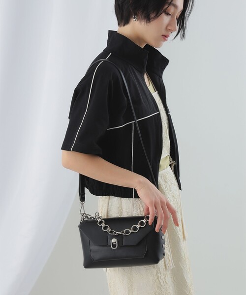 モードからカジュアルまで映える■デザインハギのない1枚の生地で組み立てられたバッグ。あえてステッチを見せないデザインがミニマルでありながら、フロント、サイド、ショルダーリングに重厚感のあるメタルパーツを使用しているところがポイント。シンプルで合わせやすいBLACKと、コーディネートの主役にもなってくれるPINKの2色展開です。■サイズメイクポーチやスマートフォンがすっきり入るコンパクトなサイズ感。■素材マットな表面が上品な合成皮革を使用。※光の当たり具合やパソコンなどの閲覧環境によって実際の色味と異なって見える場合がございます。予めご了承ください。※商品の色味は商品単体で撮影した画像をご参照ください。