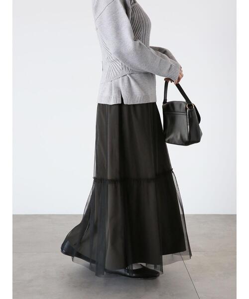 ふんわりとしたチュール素材が重ねられたスカート。表裏リバーシブルで着用でき、気分に合わせた着こなしを楽しめます。ウエストはゴム仕様なので、トップスをインしたコーディネートもおすすめ◎身に着けるだけで可愛らしいスタイリングが完成するアイテムです。※商品画像は、撮影環境やお客様のご利用のPC・スマートフォンのモニター環境などにより実物と色味に差異がある場合がございます。【その他採寸】F ウエスト:[ゴム仕様]66cm