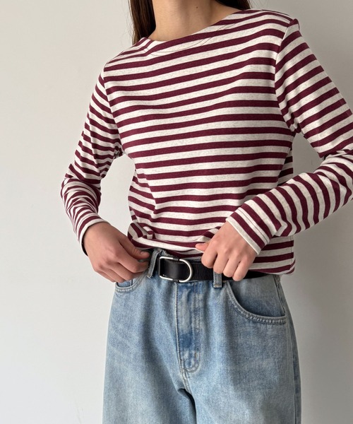 デザイン首元はボートネック仕様でスッキリとした印象に。体のラインを拾わず、少しゆとりを持たせたサイジングです。素材心地よく体を包み込んでくれるオーガニックコットン100%のフライス生地。柔らかく、着るほどに肌に馴染みます。コーディネート1枚での着用はもちろん、カーディガンやジャケットなどのインナーとしても◎パンツやスカートへのタックインもしやすく、大人カジュアルスタイルにぴったり。着心地がよく、デイリーに重宝すること間違いありません。harmonie -OrganicCotton-(アルモニ オーガニックコットン)人々が安心して暮らせる環境を物作りを通じて伝えたい。そんな思いからスタートしたオーガニックコットンの製品作り。農薬や化学肥料を使わずに育てる方法は通常のコットンに比べて手間も時間もかかります。しかし大地を健康にし、働く人にも安心してもらう製品を作る事ができます。harmonie organic は安心な暮らしのお手伝いができる商品を提供していきたいと考えています。移り変わるトレンドファッションを求めるのではなく良き、着心地・縫製・商品など良きjapanese 日本の伝統が守られた場所で生産され、細やかな心遣い・仕事の丁寧さ・日本人独自の正確さを表現できる国内縫製工場と取り組んだ高品質な MADE IN JAPAN ブランド。-------------------------------------生地の厚さ:厚い〇〇●〇〇薄い伸縮性:あり透け感:なし裏地:なし光沢:なし水洗い:可-------------------------------------harmonie(アルモニ)オリジナル素材のフライス素材は、横への伸縮に優れており、締め付け感が無くストレスを感じず敏感肌の方なども、毎日安心して着用できる素材になります。フライス素材の特徴である伸縮性を利用し、心地良いフィット感を与えてくれるアイテム展開。30/-フライス素材は、程よい厚みがあり透け感があまり無く、吸湿性・通気性にも優れているので、デイリーウェアーとしてオールシーズン使える素材です。体にも地球にも優しいフライス素材になります。※天然フライス素材の洗濯後の仕組み洗濯の際に、フライス生地は横に伸びて縦に縮む傾向があります。着丈が購入時より短くなる可能性があります。洗濯の際にデリケート素材になればなる程できる限り動かさずに洗う事が必要になります。天然繊維の弱点としては、洗濯の際に伸び縮みが発生してしまいますが、その分、肌馴染みや優しい着心地を肌に与えてくれるメリットがあります。洗濯の際に縮みや伸びを避ける為には、化織(polyester 100%やnylon 100%)の素材を使用した洋服選びになってしまいます。弊社では、肌に直接触れるアイテムが多い為、天然繊維独自の優しい着心地を感じられるアイテムを生産しております。取扱い:手洗い濃色は色落ちする可能性がありますので、他の物とのお洗濯はお避けください。生成り・淡色には蛍光増白剤の入っていない洗剤をご使用ください。長時間の水への浸漬はお避けください。洗濯後は速やかに形を整えて陰干しをしてください。水洗いの後の乾燥機のご使用はお避けください。この商品は素材の特性上、ピリング(毛玉)の発生しやすい商品です。ご了承ください。クリーニングネットを使用してください。アイロン掛けの際は、あて布をご使用ください。※取り扱い及びお手入れ方法については、商品について取扱表示、洗濯表示にてご確認下さい。※照明の関係により、実際よりも色味が違って見える場合があります。またパソコン・スマートフォンなどの環境により、若干製品と画像のカラーが異なる場合もございます。※商品の色味は、商品アップ画像をご参照ください。