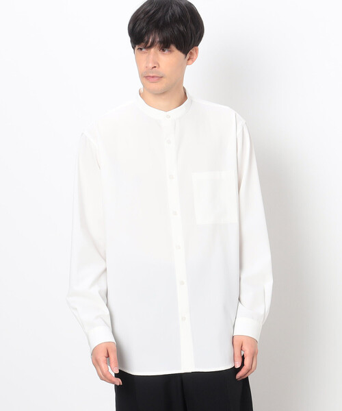 ★フジテレビ系列『イップス』にて着用されました★\ビジネスにも・カジュアルにも/ ON・OFF使える ベーシック バンドカラーシャツ《デザイン》羽織として使えるリラックスシルエットのバンドカラーシャツです。ジャケットやブルゾンのインナーとしてもお使いいただけます。袖はタック分量を多めにとり、袖口を細めていますので、ブラウジングする袖になっています。細長い剣ボロ仕様でごろつかず、ロールアップしやすいです。首の寸法をコンパクトにし、ジャケット着用時の収まりを良くしました。鎌底(アームホール下半分、脇に当たる部分)も少し浅くして、インナーとして重ね着もできるシャツにしています。《素材》スーツ地に使用されるウール梳毛素材のようなウールライクな表情が特徴で、上品な印象に仕上がり、ビジネスシーンにもおすすめです。伸縮性のある素材ですので、着心地に優れています。ライトウエイトで、しなやかな風合いでありながらも張り感を持たせた素材です。また肌離れが良いさらっとした生地感です。《取り扱い注意》洗濯機弱洗いのみ。ドライクリーニングは禁止です。素材風合いの性質上、ピリング(毛玉)が、発生する場合がありますのでご了承ください。強い日光(又は照明)を長時間受けますと変色の恐れがありますので、ご着用及び保管の際にはご注意下さい。……………………透け感:c/#01(ホワイト)ややあり c/#04(グレー)c/#05(ブラック)なし厚さ:ふつう伸縮性:あり光沢感:なし裏地:なし洗濯方法:洗濯機洗い可……………………#SS新作 #シャツ #リラックスシルエット #バンドカラー #ベーシック #ウールライク #マシンウォッシャブル※画像の商品はサンプルとなりますので実際の商品と仕様、加工、サイズが若干異なる場合がございます。※こちらの商品はFIVE FOXes独自の採寸方法となっています。本サイトのサイズガイドと採寸方法が異なる場合がありますのでご了承ください。