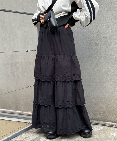 【INDIAシリーズ】繊細なレースが女性らしいティアードスカート※この製品はインドで生産されたものです。多少のデザインのずれは商品の特徴のひとつですので予めご了承ください。※生産の都合上、お届け時期が前後する場合がございます。▼デザインインド綿のやわらかさが上品な印象を与えてくれます。トレンドのティアードデザインで、裾にボリュームがでる仕様なので腰回りはスッキリとしたシルエットです。スカラップレースが繊細ながらもカジュアルにも着こなせて、大人可愛い印象に◎膝上まで裏地が付いているので安心して履けるのも嬉しいポイントです。ベーシックなホワイト・ブラックのほか、今季注目カラーのライムグリーンをご用意しております。▼スタイリングスカートにデザイン性があるので、トップスはシンプルなアイテムを合わせるのがおすすめです。オーバーサイズのスウェット合わせでカジュアルダウンするとバランス良く着ていただけます。小物はキャップやスニーカーなどボーイッシュなアイテムが相性抜群。ごつめのブーツを合わせても今年らしくて可愛いです◎夏はTシャツをインしたり、これからロングシーズンで取り入れられる着回し抜群のアイテムです!【インド綿とは】インドで栽培されているコットン生地のことを言います。 ナチュラルで、素朴な素材感が魅力的。 さらり..ふわり…と軽く、柔らかさのある風合い。またシワ、色ムラ、織りムラなどオリエンタルな独特の風合いを持っているのも特徴です。 通気性・吸水性に優れているので、湿度が高く蒸し暑い日本の夏秋にぴったりな素材です。------------------------------------------------------透け感:あり(ホワイト)伸縮性:なし裏地:あり(膝上)光沢:なし------------------------------------------------------家庭洗濯:40℃限度/手洗い可漂白:不可タンブル乾燥:不可アイロン:中温150℃まで可クリーニング:石油系溶剤による弱いドライクリーニング可、非常に弱い処理によるウェットクリーニング可●単独で洗ってください。●浸け置きはお避けください。●生成り、淡色は蛍光増白剤をお避けください。●アイロン掛けはあて布を使用してください。●この製品は洗濯の際多少縮むことがあります。●洗濯後はすぐに形を整えて陰干ししてください。●摩擦や雨・汗などにより他の衣料やバッグ等に色移りすることがございますのでご注意ください。●素材の特性上、引っ掛けが起こりやすいので、バッグや腕時計、ベルト等にご注意ください。●着用や洗濯により、ほつれが生じる場合があります。ほつれが目立つ場合は、糸を引き抜いたりカットすることなく、裏側へ引き込んでください。------------------------------------------------------※着用、お取り扱いの際は、商品についている品質表示とアテンションタグを必ずご確認下さい。※画像の商品はサンプルです。実際の商品と仕様、加工、サイズが若干異なる場合がございます。 ※照明の関係により、実際よりもやや明るく見える場合がございます。またパソコンなどの環境により、若干製品と画像のカラーが異なる場合もございます。予めご了承ください。【お買いものをよりお楽しみいただく為に!!】▼商品のお気に入り登録(ハートマークをクリック)お気に入りアイテムの完売カラーの再入荷通知や、ラスト1点の通知、セールの通知も受け取ることができます。▼ブランドのお気に入り登録新商品や再入荷など、クーポン配布などのお得な情報を受け取ることができます。
