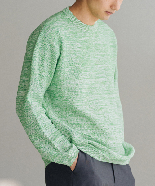 メッシュ編みのプルオーバーニット。 ギマ風素材、機能性コットンポリエステル、微光沢合繊の3素材を交編することで、奥行きのある見え方としっかりとした立体感、清涼感ある風合いを表現しております。 肌離れの良いドライな質感なので、立ち上がりから盛夏までロングスパンでご着用いただけます。 また、肉感ある素材ながら手洗い対応なのも嬉しいポイントです。 ********************** 透け感:あり(編地による透け感) 裏地:なし 伸縮性:ややあり 光沢感:なし 生地の厚さ:普通 ********************** 【スタッフ着用コメント】 《スタッフA》 身長:181cm/体重:58kg/普段サイズ:L/着用サイズ:L サイズ感:オーバーサイズまでいかないリラックス感のあるサイズ 素材感:コットン混による風合いを感じる素材 着心地:リラックス感のあるシルエットとドライな質感が着やすく感じます ********************** 【ご注意】 ※照明の関係により、実際よりも色味が違って見える場合があります。 またパソコン・スマートフォンなどの環境により、若干製品と画像のカラーが異なる場合もございます。 ※商品の色味は、商品アップ画像をご参照ください。 本体:手洗い可能