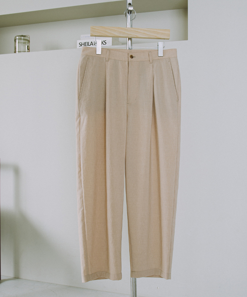 程よくゆとりを持たせた、タック入りのテーパードパンツ。 涼し気で程よくリラックス感のある印象を与えてくれます。 タックインスタイルでも映えるデザイン。 速乾性とストレッチ性を兼ね備えた機能素材『EVALET』を使用しています。軽量ながら適度なハリコシもあり仕立て映えする点も特徴です。 同素材のノーカラージャケットとのセットアップスタイルもおすすめです。 品番:24010600551010 品名:”吸水速乾 / 接触冷感” EVALET ストレッチ ウォッシャブル ノーカラージャケット 【EVALET / エバレット】 東レが開発した、優れた吸水性を持つ肌触りが快適な吸汗・速乾素材。 ポリエステル素材のため、水切れが良く、室内外を問わず素早く乾きます。 ・定番素材EVALET(R)の代表作。 ずっと愛され続ける理由が、絶妙な麻ライクなシャリ味のあるタッチの清涼感となります。 表情も強撚シック&シンの糸を使用しておりメランジ表現を可能にしてナチュラルな顔となっています。 EVALET(R)の特色である夏にぴったりの機能である吸水速乾に加えて、ストレッチ、接触冷感、ウォッシャブルと抜群の機能を備えています。 ポリエステルだけど蒸れにくい商品となっています。 ********************** ・裏地:なし ・伸縮性:ややあり ・光沢感:なし ・生地の厚さ:薄手 ********************** ※取り扱いについては、商品についている品質表示でご確認ください。 ※照明の関係により、実際よりも色味が違って見える場合があります。またパソコン・スマートフォンなどの環境により、若干製品と画像のカラーが異なる場合もございます。 ※商品の色味は、商品アップ画像をご参照ください。 本体:洗濯機洗い(弱)