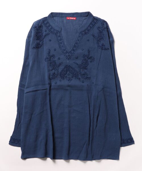 薄手のコットンクレープ生地に、インドの伝統工芸『ラクノウ刺繍』をたっぷりほどこしたトップス。 インドの民族衣装「クルタ」をイメージした、こだわりのデザイン。 オーバーサイズでリラックス感のある着心地。 様々なボトムに合わせやすく、ロングシーズン活躍する一枚です。 ※こちらの商品は1点1点職人による手作り・ハンドメイドとなります。その為、形や色合い・模様など若干個体差がございます。あらかじめご了承ください。※屋外での撮影画像は、光の当たり具合で色味・カラーが違って見える場合がございます。商品のカラーは、スタジオ撮影の画像をご参照ください。 Amina Collection Co.,LTD.