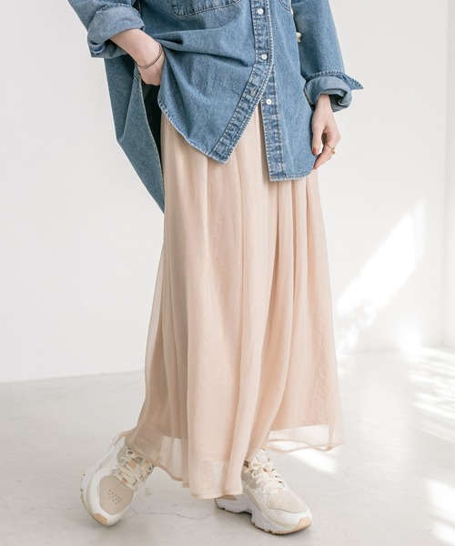 華やかなきらめきとシアー感がシーズンムードを高めるスカート●デザイングロッシーな輝きと、シアーの軽やかさをMIX。ウエストはALLゴム仕様なので着心地は抜群。ノンストレスで着用して頂けます。広がりすぎないシルエットで腰回りもすっきり!ふんわり系のニットから、スウェットなどのカジュアルアイテムまで、幅広いテイストと合わせることの出来る着回し力の高い一枚です。洗濯方法:手洗い可透け感:あり裏地:あり伸縮性:あり生地の厚さ:ふつう光沢:ありファスナー:なしポケット:なし==========================【注意点】※画像の商品は光の照射や角度、お使いのモニター環境により、実物と色味が異なる場合がございます。 あらかじめご了承下さいませ。※入荷状況により、お届け予定が前後する場合があります。※お客様への発送が店頭販売より遅れる場合もあります。※追加生産商品は、一部の店舗、通販で販売中の場合がございます。予めご了承下さい。==========================【お買い物をもっと便利に楽しく♪】『♡』をクリックでお気に入り登録✓「商品のお気に入り登録」で・・・ラスト1点や再入荷の通知が届きます。登録して頂いた商品だけが対象となる、あなただけのタイムセールが開催されることも!✓「ブランドのお気に入り登録」で・・・新商品や再入荷など、いち早くブランドのお得な情報を受け取ることができますので、ご登録をおすすめします!==========================