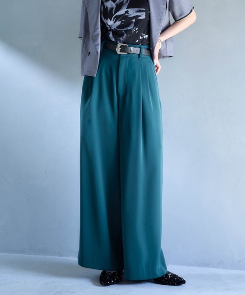 ーーートロっとした生地感が特徴のストレスフリーワイドパンツーーーpoint□定番のトロミパンツを今年らしくアップデート□2タックデザインで作成し、立体的でスタイルアップできるシルエットに□お腹周りもカバーしながら綺麗なシルエットで着用できる□微光沢感のあるトロミ生地を使用し、ストレスフリーで楽な履き心地stylingワイドシルエットなので、タイトトップスやショート丈のものと合わせるとバランスよく着用いただけます。set item同素材のシャツやジャケットとのセットアップスタイルはモードな印象に。お呼ばれなどにもおすすめです。セットアップ対応シャツはコチラを検索→【102748】セットアップ対応シャツはコチラを検索→【102738】※撮影環境により、光の当たり具合で 色味が違って見える場合があります。 あらかじめご了承下さい。