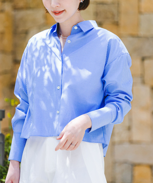 【1枚で今年らしい印象が叶うクロップドシャツ】 タックインしなくてもバランスよく着こなせる、万能デザインシャツ。1枚でトップスとしても、前ボタンを開けてジャケット風な着こなしも様になります。バックタックを施し、後ろ姿も抜かりのない印象に。クロップド丈のため、スタイルアップ効果も抜群です◎春らしい爽やかなカラー×ストライプ柄を取り入れた、3色展開でご用意。 【F by ROSSO(エフバイロッソ)】 「母・妻・私 しなやかに行き来する服」をブランドコンセプトに、様々なシーンを行き来する大人の女性に向けた、ユースフルなファッションを提案します。 【2024 Spring/Summer】【24SS】 ※商品画像は、光の当たり具合やパソコンなどの閲覧環境により、実際の色味と異なって見える場合がございます。予めご了承ください。 ※商品の色味の目安は、商品単体の画像をご参照ください。 ▼お気に入り登録のおすすめ▼ お気に入り登録商品は、マイページにて現在の価格情報や在庫状況の確認が可能です。 お買い物リストの管理に是非ご利用下さい。 素材感 透け感 : ややあり(OFF WHITEのみ) 伸縮性 : なし 裏地 : なし 光沢 : なし ポケット : なし