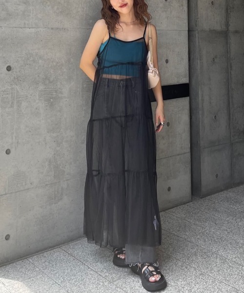 ■2枚セットで着回し力抜群■ チュール素材と布帛素材のキャミワンピースがセットになったアイテム。それぞれ別使いが出来るので着回し力抜群です。チュール素材はデニムに重ねてトレンドライクに着こなすのがおすすめ。胸下と二段の切り替えがふわっと軽やかな動きを出してくれます。布帛ワンピースは胸下切替えのみのシンプルなAラインシルエット。着丈が短めになっているので低身長の方でも着やすい長さです。肩紐はアジャスターでの長さ調節が可能。一枚あるだけで様々な着こなしを楽しめるアイテムです。ーーーーーーーーーーーーーーー透け感:チュールワンピースあり裏地:それぞれなし伸縮性:なし光沢感:なし生地厚さ:普通洗濯方法:手洗い可※詳しいお手入れ方法は商品についているタグをご覧くださいーーーーーーーーーーーーーーー※ご利用のモニター環境により、実際の色味と多少異なる場合がございます。… information … 欲しいitemをお気に入り登録(♡マークをclick) ・お買いのがし対策…完売itemの再入荷やラスト1点の情報をお知らせ ・欲しいitemをお得にget…price downになったらいち早くお知らせ ・スムーズ検索…ZOZOのお気に入りアイテムページで簡単checkできるから、再検索不要♪