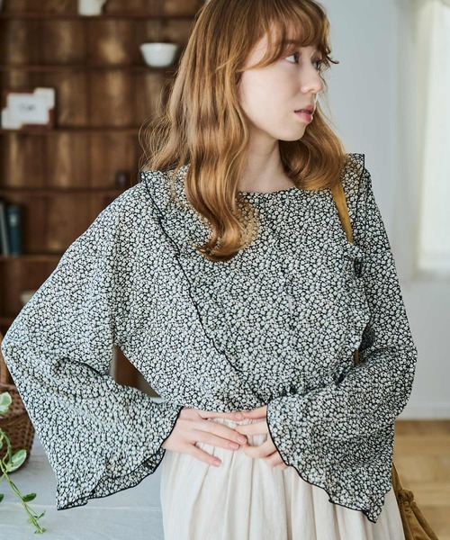 前後の胸フリルが目を惹く花柄チュニック。全体にプリントされた小花柄と贅沢に施したフリルが女性らしくナチュラルな雰囲気に。フレア袖で大人っぽい印象に仕上げました。胸下にギャザーを入れることで、すっきりと見えるのも魅力的。アウトスタイルはもちろん、薄い生地なのでインスタイルもごわつかずに着ていただけます。レースボトムとのナチュラルなスタイリングはもちろん、デニムなどのカジュアルなアイテムもおすすめ◎後ろまで施されたフリルでバックスタイルも抜かりなく演出。ヒップラインが隠れる丈感で体型カバーにも◎てろっとした花柄生地を使用した軽い生地感です。ソフトな肌触りで快適な着心地が叶います。- - - - - - - - - - - - - - - - - - - - - - - - - - - - - - - - -透け感:なし裏地:なし伸縮性:なし光沢感:なし- - - - - - - - - - - - - - - - - - - - - - - - - - - - - - - - -※ サンプル商品で撮影をしております。生産時の生地のロット違いによる色の差が生じる場合もございます。不良品ではございませんのでご了承くださいませ。ご不安のある方、ご理解いただけない方に関しましては、大変心苦しい限りではございますがご購入をご遠慮いただけますようお願いいたします。