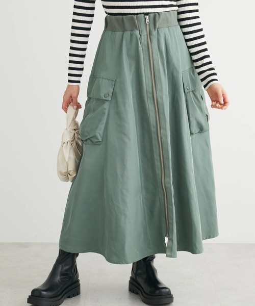 サイドポケットが存在感をプラスするミリタリーテイストなスカート。ふんわり広がるフレアシルエットで、女性らしい揺らめきを演出します。フロントのZIPラインがスタイリングのアクセントに◎トップスをタックインしたメリハリのあるコーディネートがおすすめです。透け感[無し] 裏地[無し] 伸縮性[無し] 光沢感[有り] 生地の厚さ[普通] 付属品[無し] ポケット[有り]前2つ●製品寸法:F:ウエスト[ゴム仕様]66cm ヒップ110cm 総丈88cm備考: