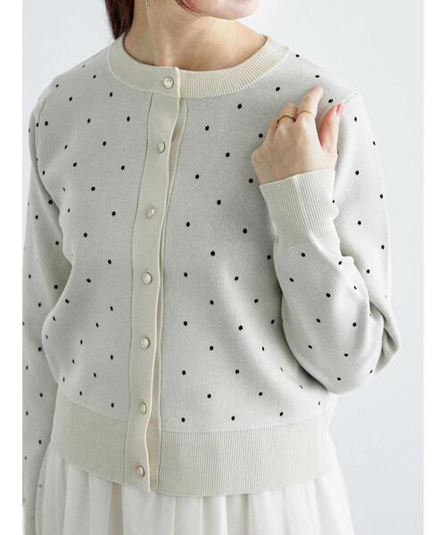 小さなドット柄で上品な印象に仕上げたカーディガン。 ベーシックなクルーネックでどんなアイテムともバランスよくマッチしてくれます。モノトーンで合わせやすいのも魅力的なポイント◎ カジュアルにも綺麗めにもスタイリングが楽しめるアイテムです。 ※商品画像は、撮影環境やお客様のご利用のPC・スマートフォンのモニター環境などにより実物と色味に差異がある場合がございます。