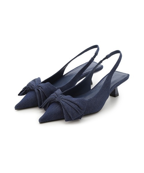 【大きなリボンモチーフも甘くなりすぎないデニムパンプス】【Design/Styling】ロマンティックムード溢れる大きいリボンがポイントのバックストラップパンプスです。リボンのボリュームは極力抑えめにし、ヒールの型や先端を細く長くすることで、モードとエッジ感をプラス。さらに、カジュアルなデニム素材とバックストラップで女性らしさの抜け感を出し、全体の雰囲気が甘くなりすぎない様に引き算。タックパンツやバギーパンツなどのマニッシュなスタイリングに合わせるのが、今季らしくおすすめです。インディゴカラーは大人上品にまとまります。※照明の関係により、実際よりも色味が違って見える場合があります。またパソコン・スマートフォンなどの環境により、若干製品と画像のカラーが異なる場合もございます。予めご了承ください。商品の色味は、商品単品画像をご参照下さい。※商品画像はサンプルのため、色味やサイズ等の仕様に変更がある場合がございますので、予めご了承ください。