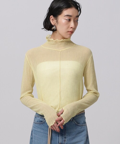 Design Pointトレンドのレイヤードスタイルで着こなしを新鮮に見せてくれるシアーカットソー。ほど良くゆとりを持たせたシルエットで、リラックスした大人の印象に。イン・アウトどちらの着こなしもバランス良く決まる絶妙な丈感もポイントです。Styling Pointシンプルなデザインでどんなコーディネートにも馴染み、幅広い着こなしで活躍してくれるベーシックアイテムです。Fabric Pointサスティナブルな素材として注目されているヘンプをブレンドし織り上げたシアージャージ。繊細さがありつつも、ヘンプ混ならではのナチュラルさを感じる風合いが魅力です。さらりとした肌触りで暑い時期にも心地良く着用いただけます。モデル情報:身長170cm B82 W60 H89 着用サイズ:38店舗へのお問い合わせ商品番号:523-18011●製品寸法:38(M):着丈65cm B80cm 袖丈66cm 肩幅36cm備考: