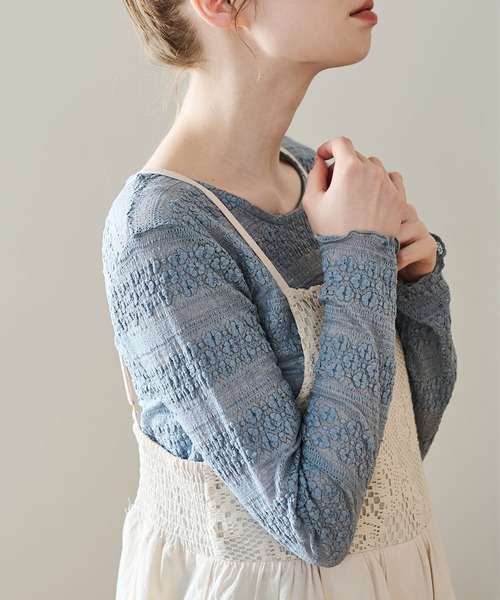 総レースの透け感が大人フェミニンなレーストップス。繊細なレースデザインでコーディネートに取り入れるだけで華やかさをプラスします。首元は開き過ぎないシンプルなデザインです。袖口はメロウフリルデザインがさり気なくレディライクな印象に。シアーな透け感こなれた着こなしが叶います。1枚でのメイン使いはもちろん、伸縮性のある素材なのでインナーとしても活躍◎デイリー使いしやすく、合わせるアイテム次第できれいめにもカジュアルにもお使いいただけます。バックネックは涙開きデザインで後ろ姿まで抜かりなく演出。袖口は長めで手元を華奢に見せてくれるのも嬉しいポイント。ストレッチの入った総レースで透け感のある生地。伸縮性があり着心地の良い1枚です。- - - - - - - - - - - - - - - - - - - - - - - - - - - - - - - - -透け感:あり裏地:なし伸縮性:あり光沢感:なし- - - - - - - - - - - - - - - - - - - - - - - - - - - - - - - - -※ 撮影時の照明などの環境と、モニターに表示される色味がメーカーにより変わってしまう等の理由により、実際にお届けする商品と、ご覧になられているアイテムの色が若干異なる場合がございます。ご了承下さいませ。