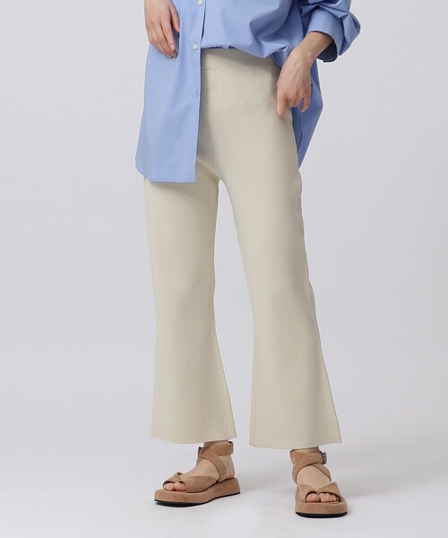 Design Point総針でしっかりとした厚みをもたせ、裾に向かってややフレアに仕上げたクロップド丈のニットパンツ。※ポケットなしStyling Point同素材のチュニックニット(523-18416/2月上旬販売予定)とニットアップで着るのがおすすめ。単品でも、ゆるトップスやボリュームトップスの下に着るだけでコントラストのきいたスタイルを完成できるべーシックなニットパンツです。Fabric Pointフォルムがキープしやすいニット素材。※裏地なし※アイボリー(004)はやや透け感があるため、インナーの着用をおすすめします。モデル情報:身長170cm B82 W60 H89 着用サイズ:38店舗へのお問い合わせ商品番号:523-68416●製品寸法:38(M):W68cm H84cm 股下62cm 前股上26cm 裾幅25cm備考: