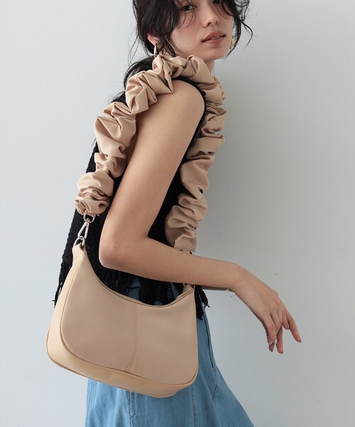 Design Point すっきりとしたナイロン素材を曲線フォルムに落とし込んだ、大人にぴったりなハンドバッグ。 ハンドルのギャザーワークがポイントで、肩掛けした時に存在感が光るアイテムです。 アクセサリー感覚でスタイルにアクセントを付けてくれます。 ※ポケット数:内側×2 店舗へのお問い合わせ商品番号:523-08008 ●製品寸法: 00(FREE):高さ13cm 幅(上部)21cm 幅(下部)24cm マチ6cm 付属ショルダー全長68.5cm 備考:重量:約330g(サンプル重量)