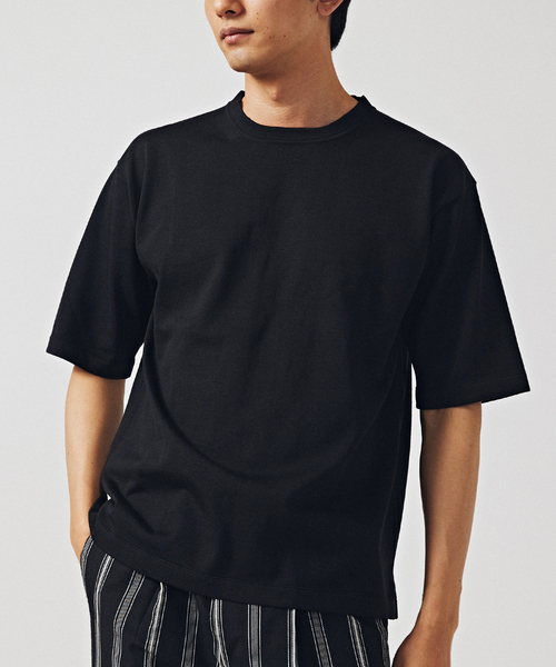 ■デザイン 適度にゆったりとしたシルエットのニットTシャツ。 シンプルながらも襟元や袖口のちょっとした編地の変化がシャイなデザインフックになっています。最大度詰、16ゲージで編まれたしっかりとした肉感は体の線も出にくく、一枚で様になる大人のアイテムです。 ご家庭での洗濯も可能な、普段着をアップデートしてくれる特別な商品となっています。 ■素材 表地にはシルク、裏地にはコットンポリエステルが出てくるよう、2重組織で編まれたニット素材。 最大度詰で編まれたしっかりとしたした肉感とシルク特有の上品な光沢が特徴です。 ********************** 透け感:なし 裏地:なし 伸縮性:ややあり 光沢感:なし 生地の厚さ:普通 ********************** 【スタッフ着用コメント】 《スタッフA》 身長:178cm/体重:62kg/普段サイズ:L/着用サイズ:L サイズ感:ジャストルーズなサイズ感 素材感:滑らかな触り心地で肉感のある素材 着心地:リラックス感のあるシルエットとドライな質感が着やすく感じます ********************** 【ご注意】 ※照明の関係により、実際よりも色味が違って見える場合があります。 またパソコン・スマートフォンなどの環境により、若干製品と画像のカラーが異なる場合もございます。 ※商品の色味は、商品アップ画像をご参照ください。 本体:手洗い可能