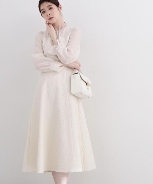 【商品特徴】ふくれジャガードを使用した上品ワンピース。 胸元のシアー切り替えで、春にぴったりな軽さと女性らしさを演出。 ウエスト両脇にシアーのカットアウトを入れ、今っぽさとウエストが細見えするよう仕上げています。 袖カフスにはスリットを入れ、動くたびに手元が見えるのもポイント。 ウエストの後ろはゴム仕様なので着心地が良いです。 【スタイリング】 一枚でコーディネートが決まる時短ワンピースです。 <商品のお気に入り登録> お気に入りアイテムの値下げ・再入荷・在庫1点などの通知を受け取ることができる 便利機能ですので気に入ったアイテムはお気に入り登録がおすすめ! <ショップのお気に入り登録> 新商品や再入荷、セール、クーポン配布などお得な情報を受け取ることができます。 ●撮影はサンプル商品で行っている為、仕様とサイズが異なる場合がございます。 ●スタジオ及び屋外で撮影した着用画像は、光の当たり具合で色味が違って見える場合があります。予めご了承ください。
