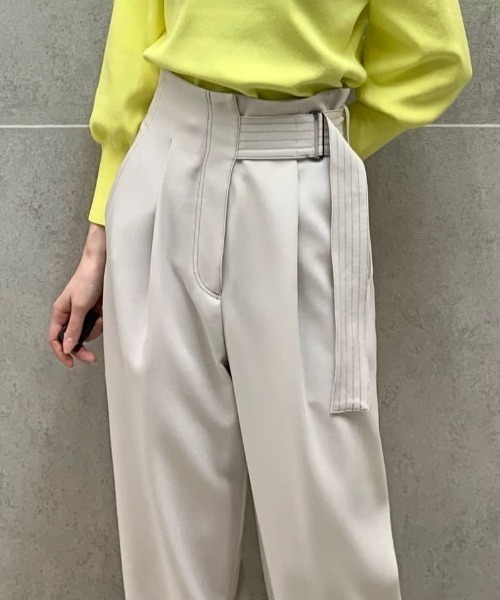 【CAST:キャストコロン 2024年春夏アイテム】【Design】CAST:定番のベルトワイドパンツ。ウエストのベルトデザインが特徴的なカジュアルパンツです。配色ステッチがアクセントで、シンプルなトップスと合わせてもサマになるパンツ。ウエストベルトなので幅広い体型や年齢の方に対応できる万能パンツです。【Fabric】きれいな表面感とドライなタッチのポリエステル素材を使用。柔らかさと軽さを兼ね備えていて、シワになりにくく、お手入れしやすい素材です。【Styling】トップスをインするとウエストがシェイプされるので、スタイルアップ効果も抜群です。●洗濯:手洗い可透け感:なし伸縮性:あり生地の厚さ:普通おすすめ着用期間:春、夏、秋※この商品はサンプルでの撮影を行っています。実際の商品とイメージ、サイズ、品質表示、原産国等が異なる場合がございます。※店頭及び屋外での撮影画像は、光の当たり具合で色味が違って見える場合があります。商品の色味は、スタジオ撮影の画像をご参照ください。