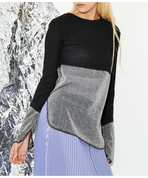 異素材の切り替えデザインが目を惹くプルオーバー。 ラメ生地はシアー素材になっており、透け感がより華やかな印象に。 ストレッチも効いているので着心地も抜群です。 サイドのスリットが抜け感もプラス◎ 1枚で着るだけでなくレイヤードスタイルのインナーとしても活躍し、コーデに取り入れるだけでトレンド感のある着こなしに仕上がります。 ※ストレッチあり※裏地なし ※透ける素材になっております。 ※リブ素材のため、伸縮性があり記載しているサイズと若干異なる場合がございます。予めご了承ください。 ※商品のお取扱いに関しましては、商品に付属のアテンションカード、洗濯ネームをご覧ください。 ※モデル着用画像は光の当たり具合で色味が違って見える場合がございます。 ※商品の色味の目安は、色見本画像をご参照ください。 【お買いものをお楽しみいただく為に!】 ▼商品のお気に入り登録 完売カラーの再入荷通知や、ラスト1点の通知、セールの通知も受け取ることができます。 ▼ブランドのお気に入り登録 新商品や再入荷など、いち早くブランドのお得な情報を受け取ることができます。